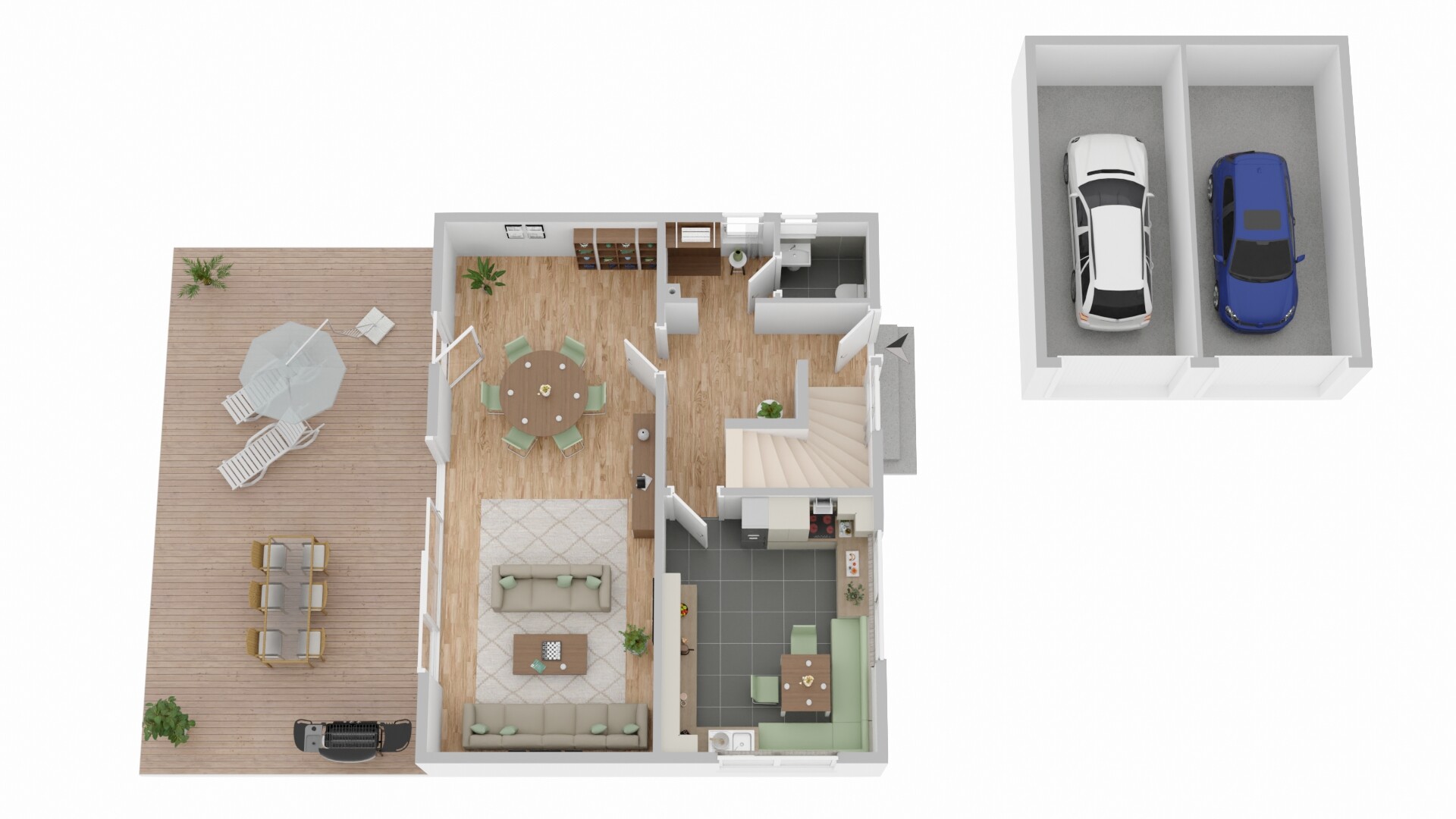 Das Herzstück des Hauses ist der großzügige Garten, der viel Platz für Kinder zum Spielen und für entspannte Stunden im Freien bietet. Eine überdachte Terrasse lädt zu gemütlichen Abenden mit der Familie ein.